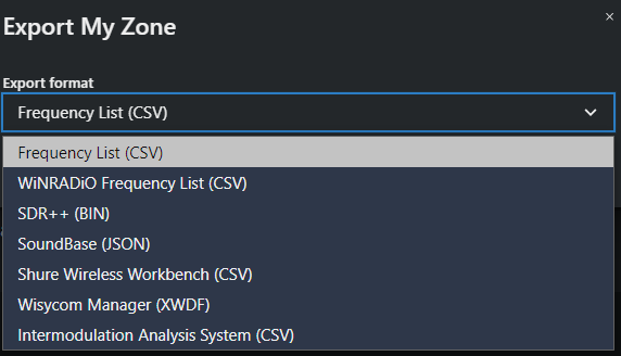 Select the format Shure Wireless Frequency List (CSV).